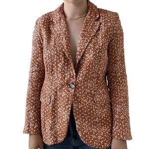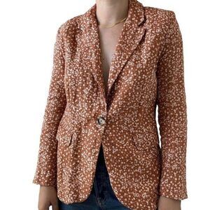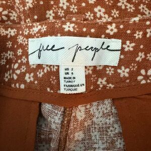Free People Maggie Burnt Orange Floral Linen Blazer Pants Set Size 2