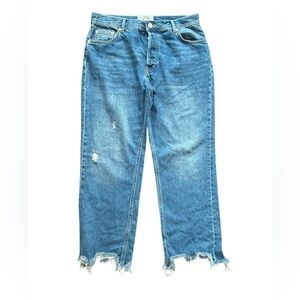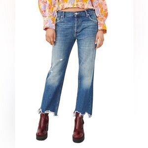 Free People Maggie Distressed Mid-Rise Straight-Leg Jeans Sequoia Blue NWT 29