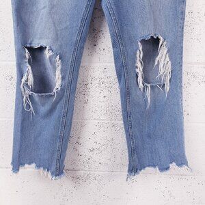 Free People Maggie Mid Rise Straight Jeans Distressed Raw Hem Womens Size 29