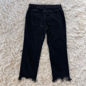 Free People Maggie Mid Rise Straight Jeans cropped distressed black size 28