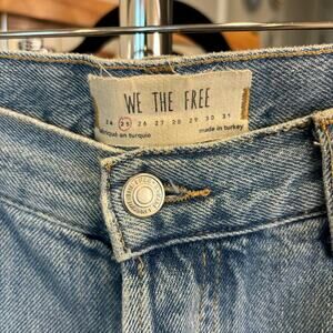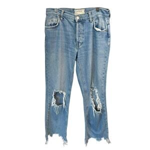 Free People Maggie Mid Rise Straight Leg Jean in Aged to Perfecion. Size 25. Features . light whiskering and destroyed detail, button fly, frayed hem. 100% cotton. Style OB832365. Excellent condition, no flaws.