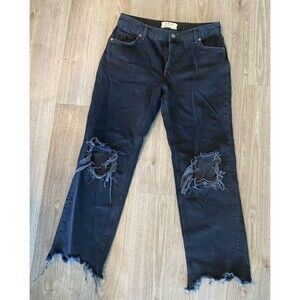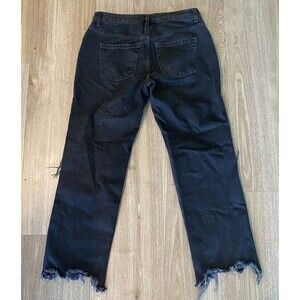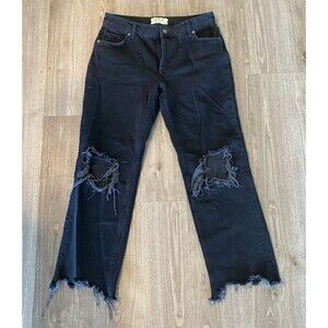 Free People Maggie Mid-Rise Straight-Leg Jeans (26) 26 X 25 BLACK RAW HEM