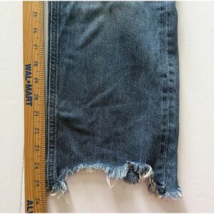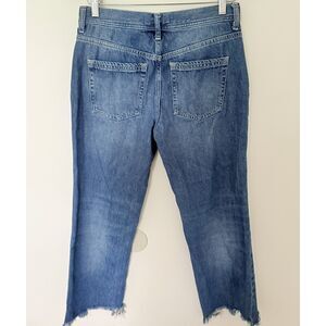 Free People Maggie Straight Jeans High Rise Rigid Denim Frayed Hem Button Fly 27