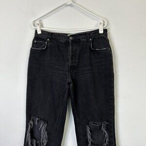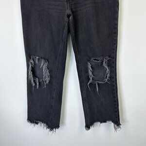 Free People Maggie Straight Jeans Womens Size 29 Black High Rise Frayed Ankle