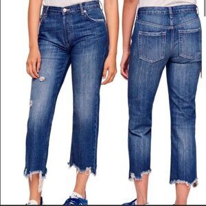 Free People Maggie Straight Leg Distressed Cropped Jeans