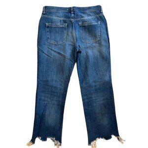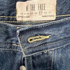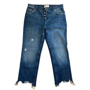 Free People maggie straight leg mid-rise distressed cropped jeans in sequoia blue. Button fly. NO TRADES.