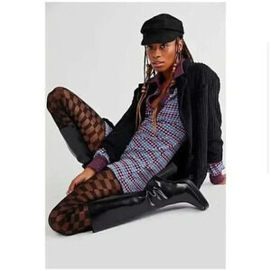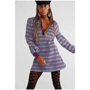 Free People Maggie Sweater Printed Henley Polo Puff Mini Dress