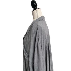Free People Magic Breeze Gray Micro Stripe Button Down Shirt Large Oversized