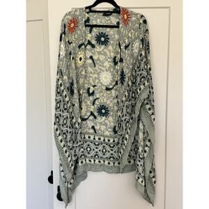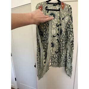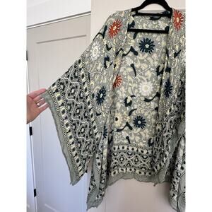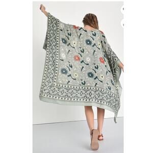 Free People Magic Dance Sage Green Printed Shawl OS Floral Kimono Boho Festival