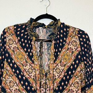 Free People Magic Mystery Boho Bell Sleeve Tunic in Navy size Small