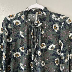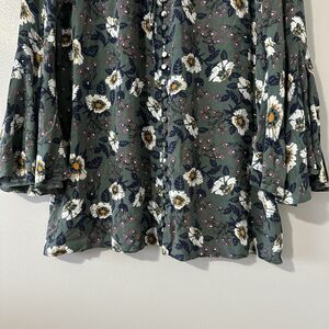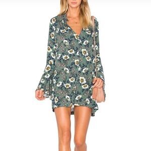 Free People Magic Mystery Size XS Boho Green Floral Mini Tunic Dress Bell Sleeve