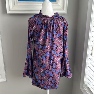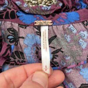 Free People Magic Mystery Tunic Purple Blue Boho Floral Tie Neck Top Blouse S