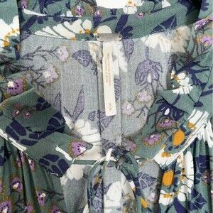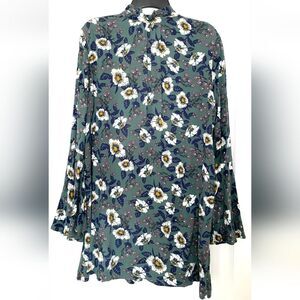 FREE PEOPLE Green Floral Printed Long Bell Sleeve Magic Mystery Tunic