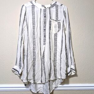 Free People Magic Pullover Button Down Collarless Flowy Blouse