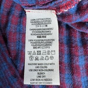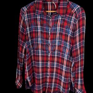 Free People Magical Plaid Red/Blue Embroidered Plaid Shirt Sz M