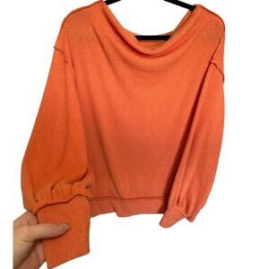 Free People Main Squeeze Hacci Top Long Balloon Sleeve Ribbed Orange Size XS