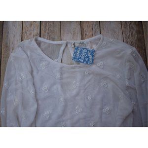 Free People Make Out Mesh Embroidered Bodysuit Ivory