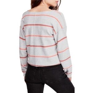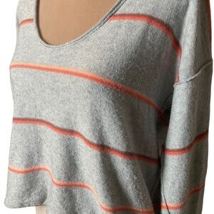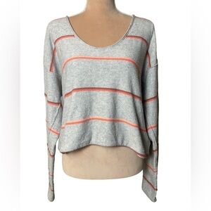 Free People Make You Mine Grey & Pink Striped Cropped Knit Sweater Size Medium