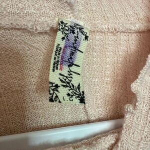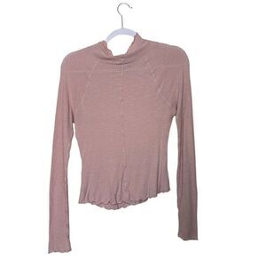 Free People Make it Easy Thermal Turtleneck Top Women L Blush Pink Stretch Boho