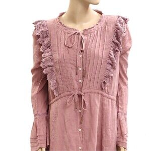 Free People Making Memories Midi Dress Buttondown Crochet Lace Cotton S 283184