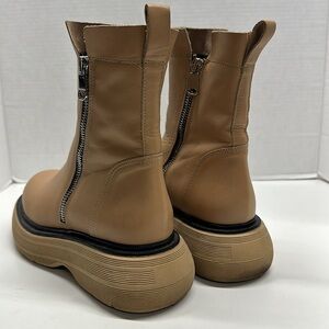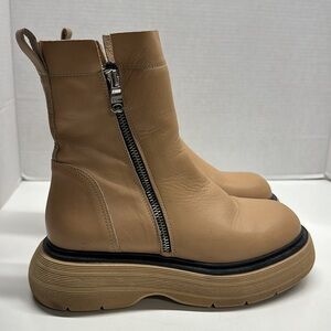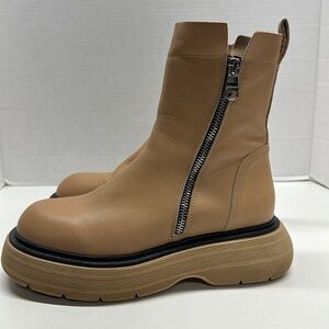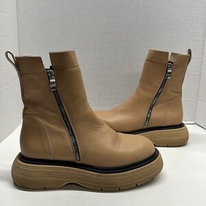 Free People Mara Boots Dual Zip Chunky Platform Leather Boot Latte Brown Size 8