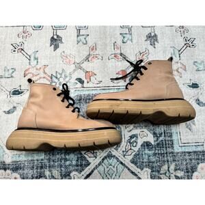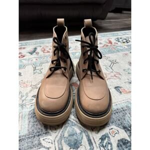 Free People Mara Combat Lace Up Boots Taupe Leather Sz 38