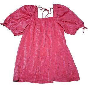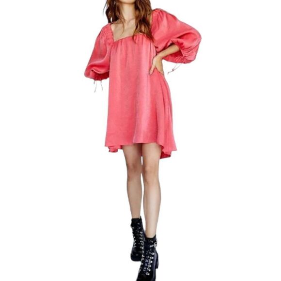 Free People Mara Mini Women's Shimmering Barbie Core Pink Balloon Sleeves Pullover Mini Dress Sz Medium