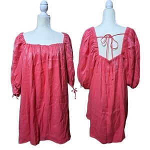 Free People Mara Mini Dress Women's Shimmering Boho Tunic Pink Balloon Sleeves M