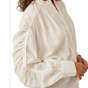 Free People "Maraya Ruched Puff-Sleeve" Cotton Blouse