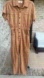 Chic brown coverall with button-up front. Features short sleeves and pockets. Used worn once . Threading defect. On the side under armit.