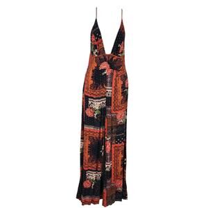Free People Margarita Patchwork Strappy Back V-Neck Wide Leg Jumpsuit Size 4