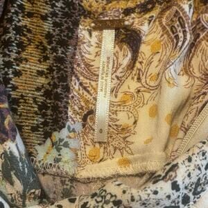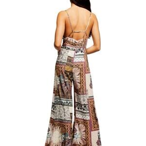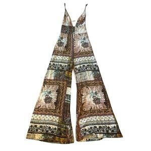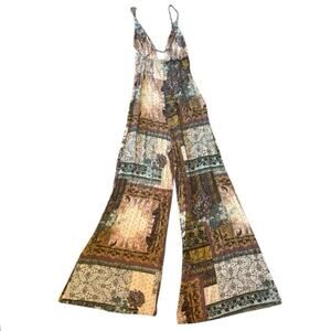 Free People Margarita Patchwork Wide Leg V-Neck Jumpsuit Multicolor EUC Size 0