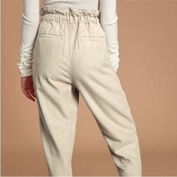 Free People Margate Pleated Drawstring Cargo Trouser Medium Cream Tan