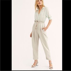 Free People Margate Pleated Drawstring Cargo Trouser Medium Cream Tan