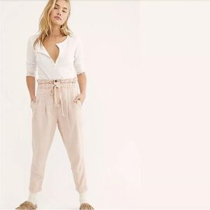Free People Margate Pleated Trouser Pants Medium Pink paper bag cotton casual