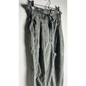 Free People Margate Sz XS Pleated Paper Bag Baggy High Waisted Trousers Green