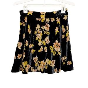 Free People Margaux Velvet Mini Skirt A-Line Black Pink Floral Size 4