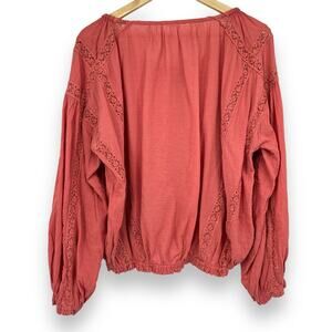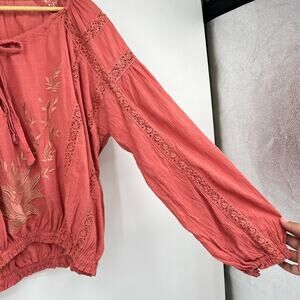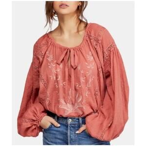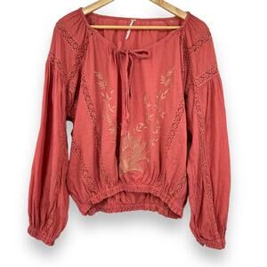Free People Maria Maria Embroidered Boho Peasant Blouse Women's S Pink