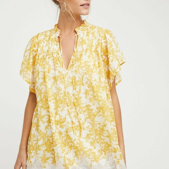 Free People Marigold Printed Floral Lace Dress L