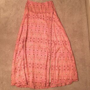 Embrace elegance with this floral pink maxi skirt. Perfect for any occasion, it offers a stylish and comfortable fit.