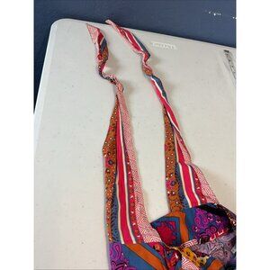 The Free People Maritzah Jumpsuit in size 2 is a stylish and colorful one-piece outfit perfect for a casual occasion. This wide-leg, cropped jumpsuit features a sleeveless design, V-neckline, and zip closure for easy wear. Made from rayon fabric, this boho-inspired jumpsuit is ideal for the summer, fall, and spring seasons. The Moroccan-inspired multicolor theme adds a unique and vibrant touch to this trendy piece from the Free People brand.