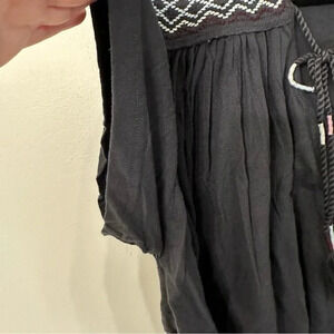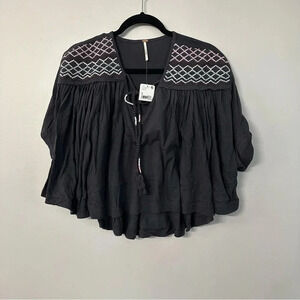 Free People Market Embroidered V-Neck Top Washed Black Size SM NWT