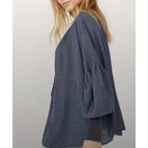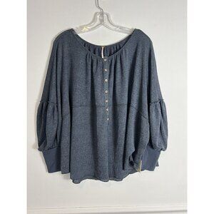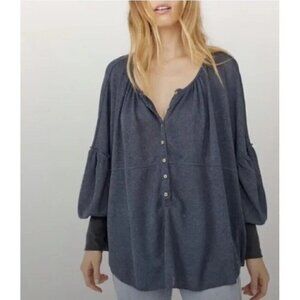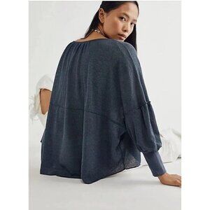 Free People Marla Henley Oversized Boho Poppy Seed Blue Top Size Small
