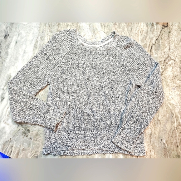 Free People Marled Knit Sweater Gray Black White Slouchy Pullover Women’s L