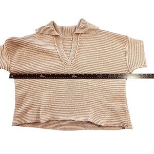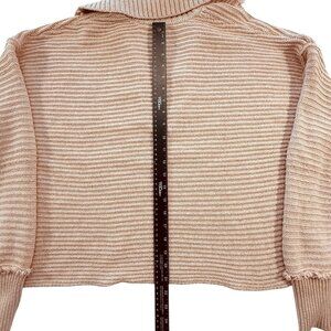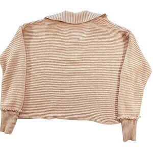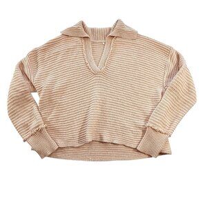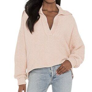 Size/Brand tag missing. See photos for measurements. The Free People Marlie Pullover Sweater in Blush Pink is a cozy and stylish addition to any woman's wardrobe. Featuring a cable-knit design, long sleeves, and a collared neckline, this oversized sweater is perfect for the fall season. Made from a comfortable cotton blend material, the relaxed fit and boxy crop style offer a trendy and classic look. Perfect for layering over your favorite outfit, this Free People sweater is a versatile piece that can be dressed up or down for any occasion.