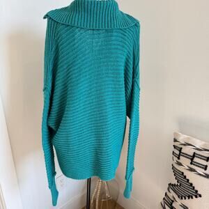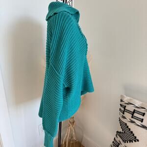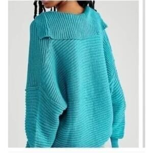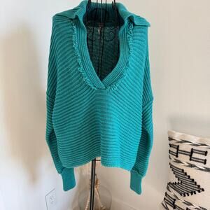 Free People Marlie Teal Green Collared Rib Knit Oversized Pullover Sweater XS