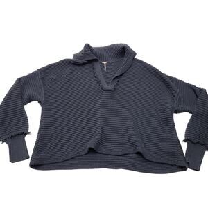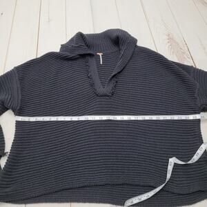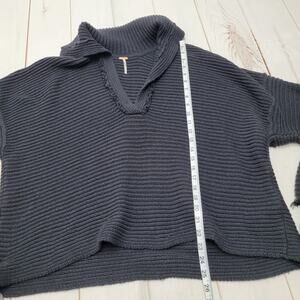 Cute Free People "Marlie" black pullover sweater! Chunky knit with an oversized fit and a V neck. Gently worn, just has a pulled thread on the back (Has not caused any holes or issues). Size Large