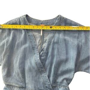 Free People Marlin Chambray One-Piece Shorts Romper Bell Sleeve Jumpsuit Size S