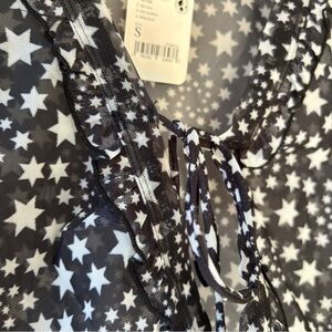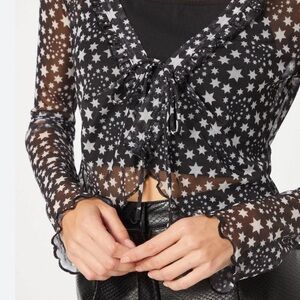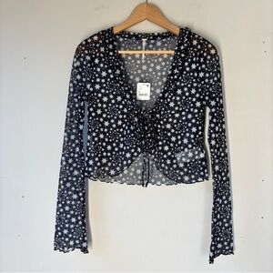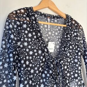 Free People Marne Mesh Sheer Black & White Star Print Cropped Wrap Top Sz M NWT