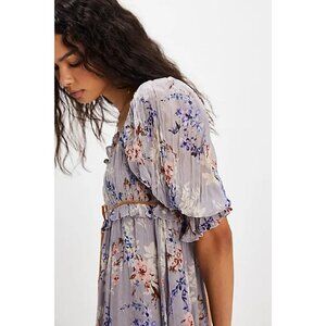 Perfectly printed in the sweetest babydoll-inspired style, this effortless mini dress features a slightly square neckline with puffed sleeves, contrast ribbon detailing, and ruffled bottom hem for a femme finish.
